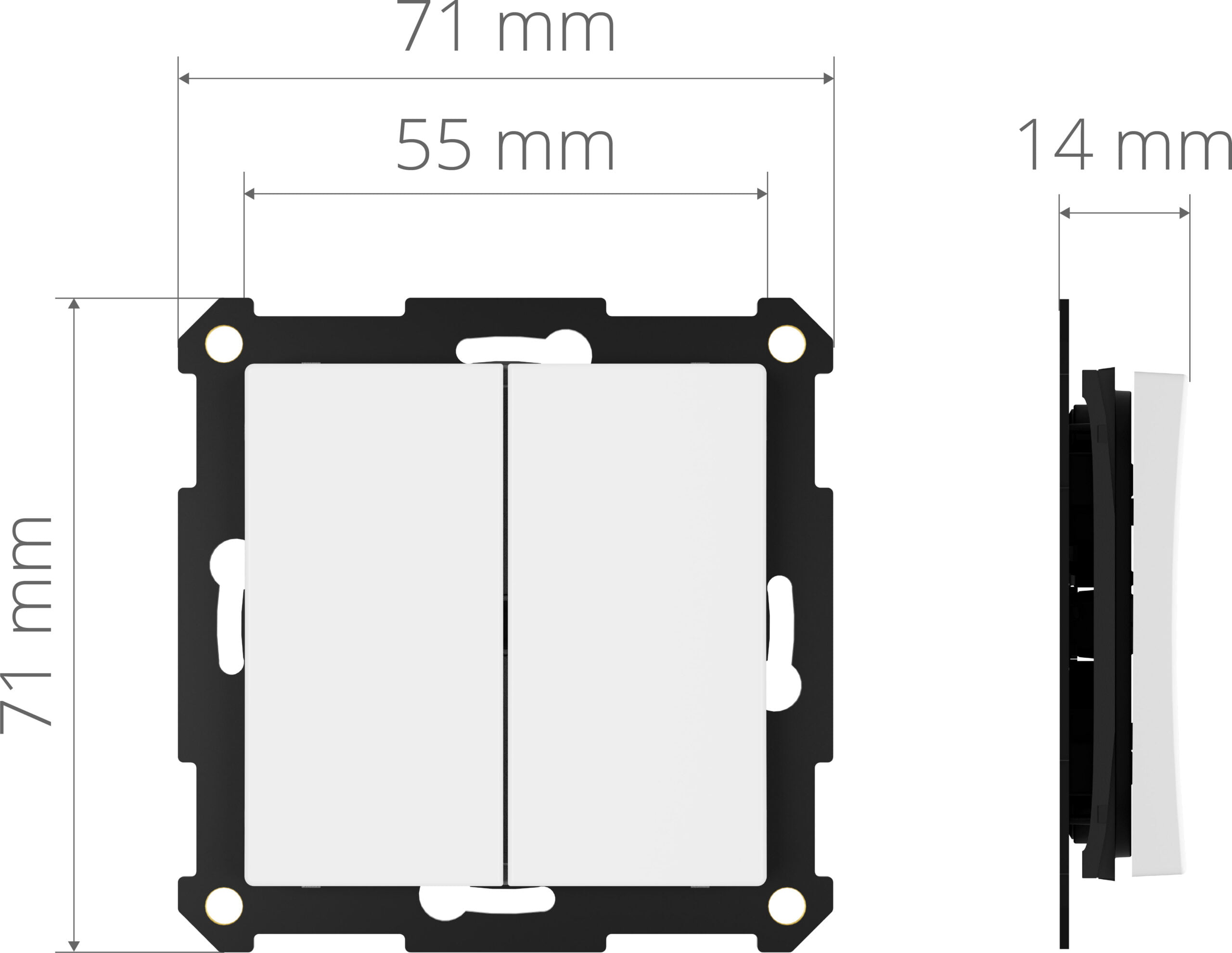 Konfigureras i Plejd-appen. Tryckknappen monteras enkelt utanpå standard apparatdosa eller med dubbelsidig tejp eller skruv.