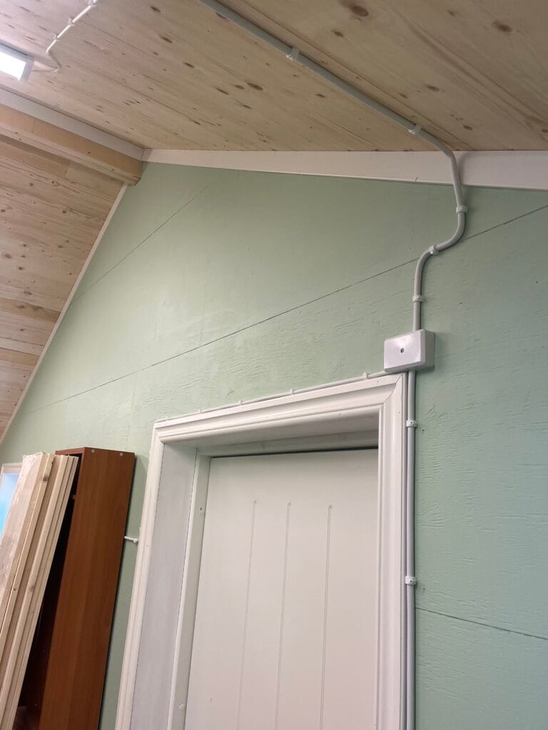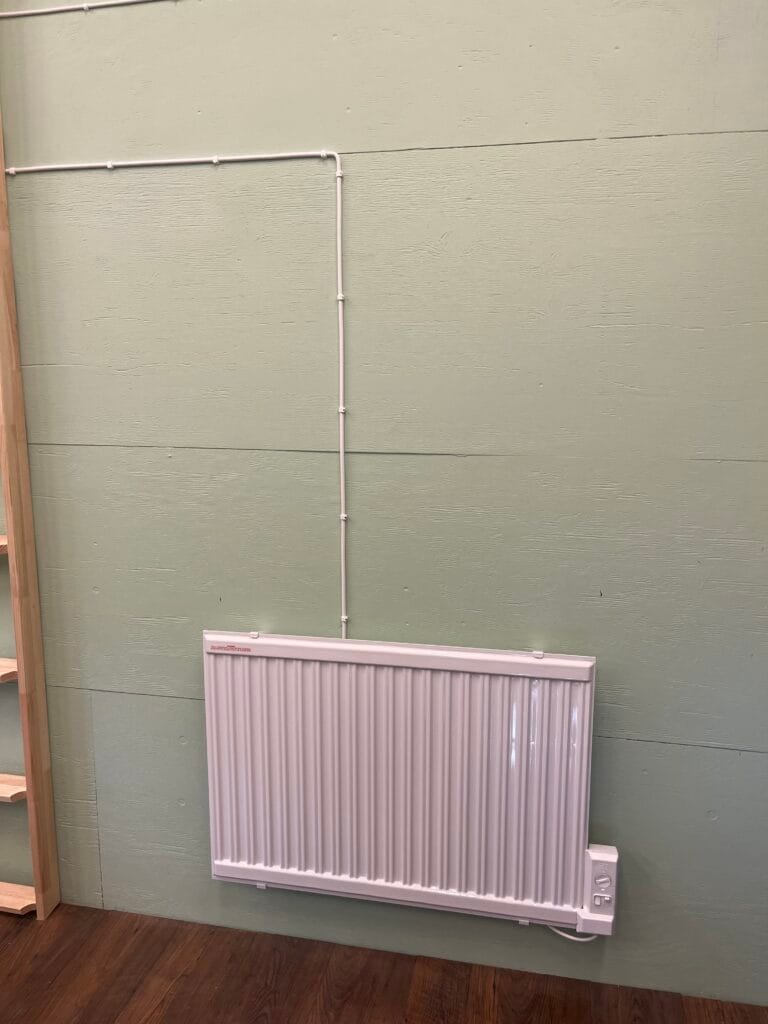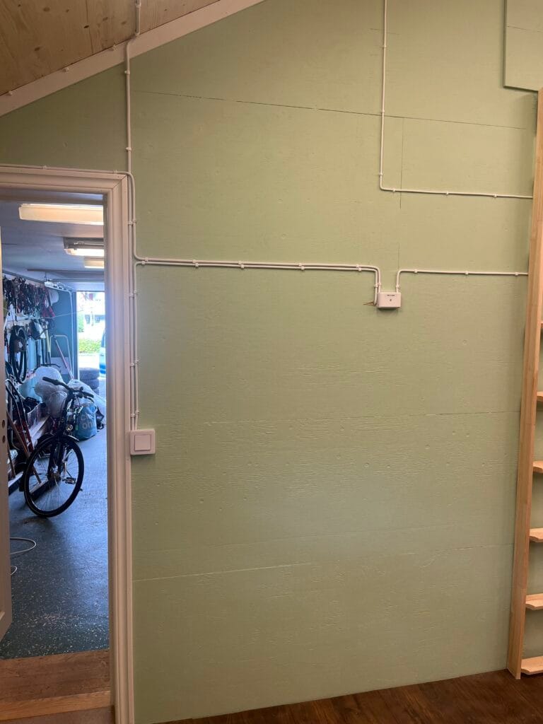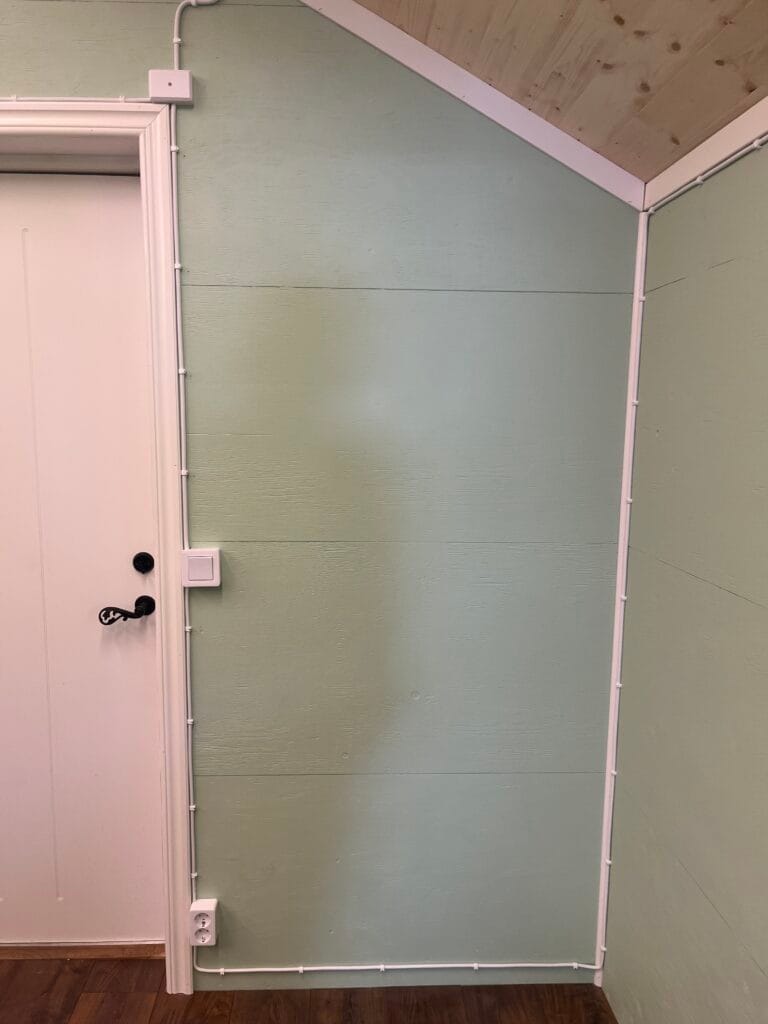 Utanpåliggande kabeldragning och Installation av elradiatorer, takbelysning, strömbrytare och vägguttag.