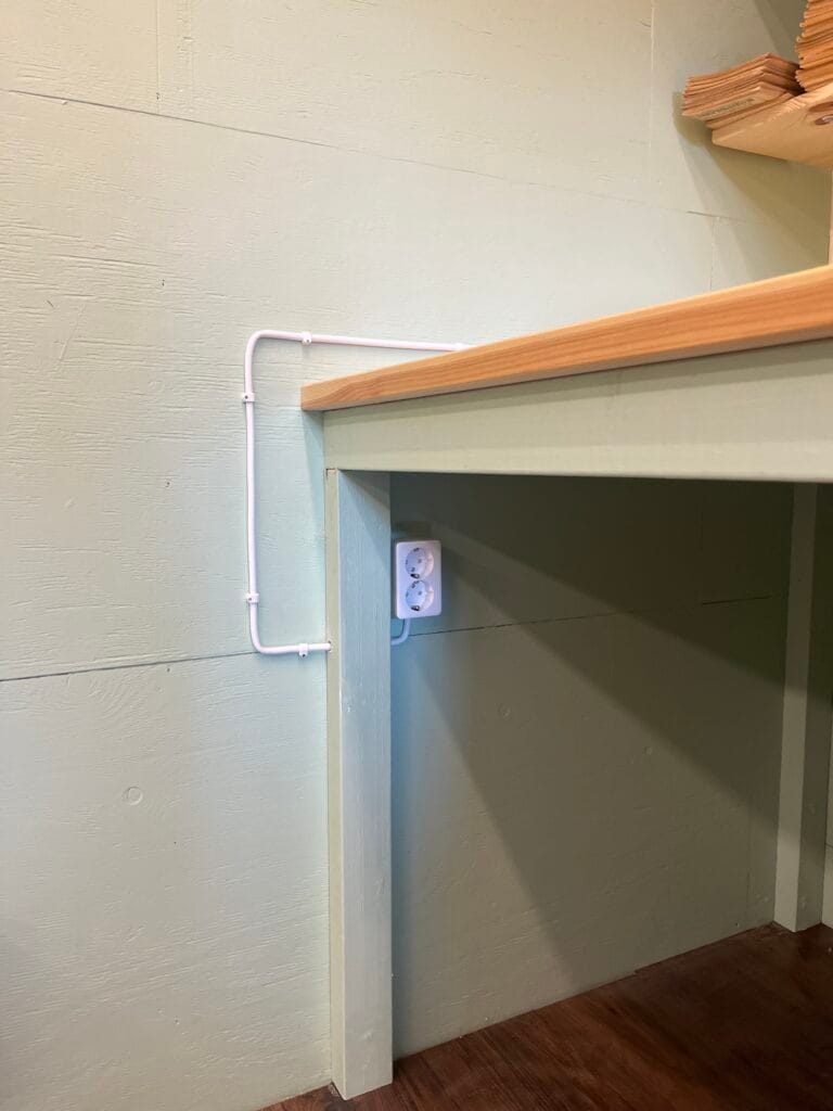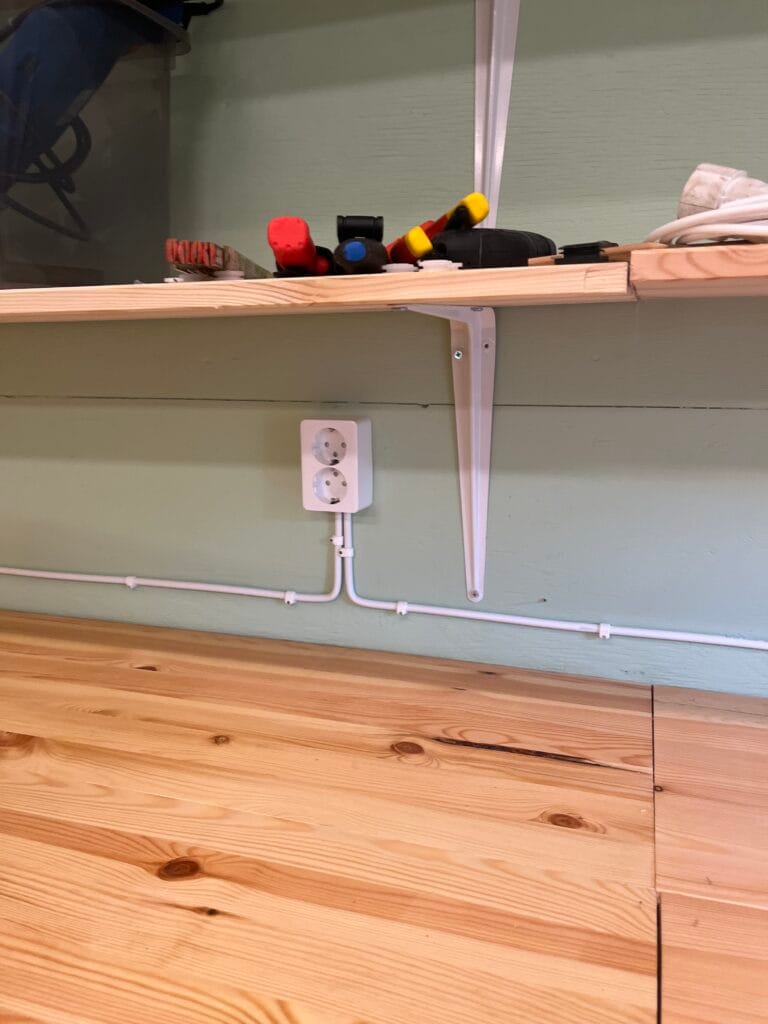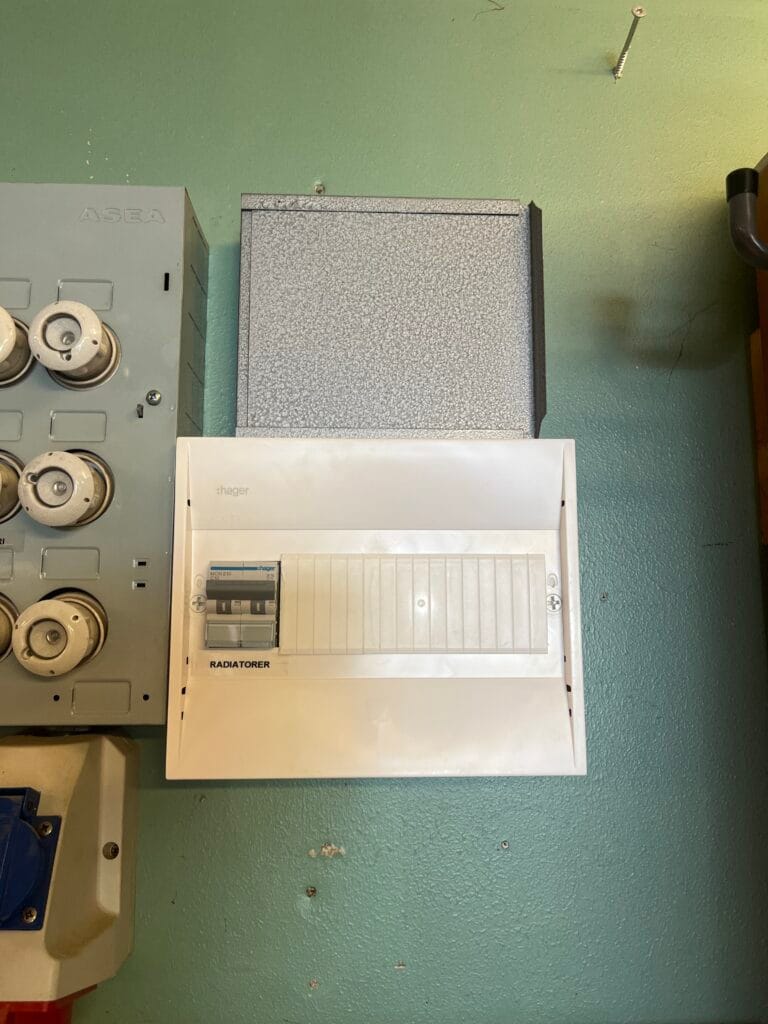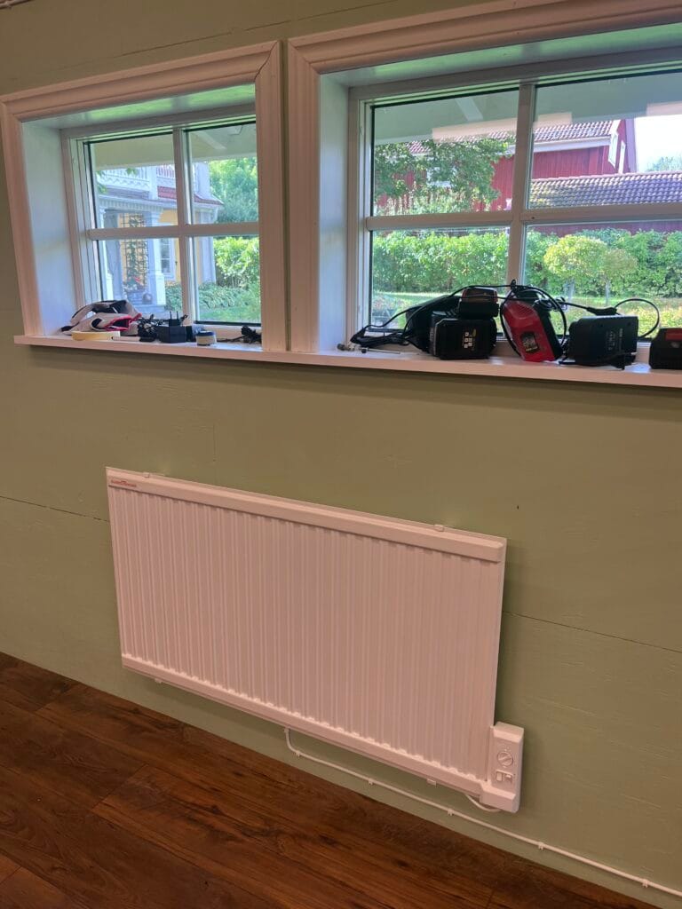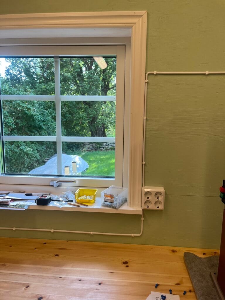Utanpåliggande kabeldragning och Installation av elradiatorer, takbelysning, strömbrytare och vägguttag.